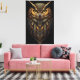 This striking owl artwork blends African cultural motifs with a modern abstract aesthetic. The golden geometric patterns and deep black background create a bold sense of wisdom, mystery, and protection. Ideal for canvas prints, posters, or stylish t-shirt designs.
