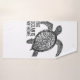 The image features a stylized illustration of a sea turtle, composed of black dots and lines. The turtle is facing left, with its flippers and shell intricately detailed using a dot pattern, creating a textured effect. Below the turtle, the text "THE OCEAN IS MY HOME." is prominently displayed in bold, uppercase letters. The entire design is in black and white, giving it a striking and high-contrast appearance. This illustration likely serves as an artistic expression of marine life and conservation.