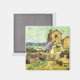 The Old Mill by Vincent van Gogh is a vintage fine art post impressionism architectural painting featuring a working mill with a couple walking in the foreground and fields in the distance.