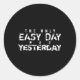 The Only Easy Day Was Yesterday White Text Classic Round Sticker