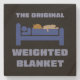 Weighted blankets may be used to comfort and reduce anxiety, both of which may improve sleep quality. Recently, weighted blankets have become widely available to consumers. But cat owners have been experiencing the stress-reducing benefits of sleeping under weight for years. Cats have the added benefit of providing white noise and light vibration through purring, plus body warmth, and love. This fun graphic design uses icons to depict a person sleeping in a bed with two silhouette cats snoozing on top. The cute image of kitty love is captioned with bold text that reads THE ORIGINAL WEIGHTED BLANKET.