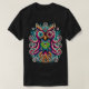I give wanted to give this a 4 instead of a 5 because these Basic DARK T0shirts run unexpectedly SLIM or Narrow. Which is great if you do not have a potbelly, but I have a paunch. It isn't the shirt's fault that I've got a beer belly. The design and shirt itself is a quality cotton shirt. The color is more of a deep purple, but still a very pretty color. The Basic DARK T-shirts run a bit SLIMMER than the Basic Ts. The neck is a fraction narrower (or seems to be narrower) also. I'm a paunchy middle-aged woman and my neck is 12 inches (31cm) thick and the neckline fell about the same as in the photo of the man, and I had the desire to tug it a bit. So if you're a thick necked man or like loose shirts, be aware these are slimmer shirts. Once I get rid of my lockdown paunch it'll look great. The shirt washed well in cold water with no apparent bleeding. We don't have a dryer, so it hung dry. Did not shrink. Love the colors and the design. The design looks smaller on my shirt than it does on the model on-line. But still, it looks good on the shirt. The printing looks as it does on the model, just the size seems fractionally smaller. Washed garment in cold water, hung dry and design appeared unaffected.