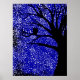 A silhouette of an owl in a tree against stars