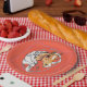 The Palomino on a salmon coloured background with a blue circle and two rectangles. A great napkin for your favourite horse lovers home or party!