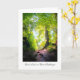 A great card showing a view of the last of a dark, steeply inclined path, rising to a sunny glade beyond. Late afternoon sun is flooding through the trees ahead and dappling the last of the path, warmly inviting you to make the final effort.