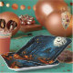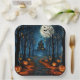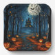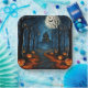 This Halloween design plunges you into a haunted forest, lit by an imposing full moon. A winding paved path, surrounded by bare and tortuous trees, leads to a mysterious haunted house perched on a distant hill. Sculpted pumpkins with worrying smiles line the path, throwing an orange glow on fallen autumn leaves. Bats swirl around in the sky bathed in lunar light, accentuating the scary atmosphere. Ideal for Halloween's decoration, this design captures the essence of an enchanting autumn night, mixing mystery and fun thrills.