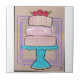 A delightful study in pattern and rhythm, this three-tier cake collage blends classic damask, playful stripes, and soft polka dots. Anchored by a vibrant teal cake stand, the pastel pinks and purples create a soft, inviting harmony.