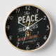 A black clock adorned with the powerful words The Peace of Gods Purposes in bold white lettering, conveying a message of faith and divine guidance. The peace of God surpasses understanding.