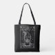 Grunge tarot card design for peppermint latte lovers! The Peppermint. White and black illustration with a to-go coffee cup with whipped cream plus skeleton hands, candy canes, and snowflakes.