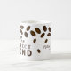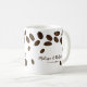 Trendy and unique coffee wedding favour mug designed with coffee beans . Personalise with bride and groom names and wedding date.