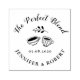 Wedding stamp featuring cute coffee illustrations encircled with a script font 'the perfect blend' and elegant personalised monograms.
