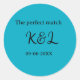 The perfect match couple name letter date blue sim classic round sticker