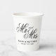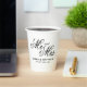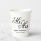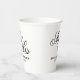 The perfect match wedding party supplies custom Paper Cups. Elegant design template with stylish script typography. Personalise with names of bride and groom plus date of marriage. Font type can be changed. Part of beautiful matching theme involving fancy table decorations and the best formal stationery. Black and white or custom colours. Disposable cups for hot and cold drinks. Affordable designs for budget friendly marriage.
