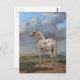 Wonderful nature scene with piebald horse gazing at hunters passing with their greyhounds and stormy clouds in the background. Original painting by Dutch artist Paulus Potter 1650-54.