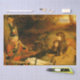 This design features a painting by the English artist Sir John Everett Millais, who was one of the founders of the Pre-Raphaelite Brotherhood. It shows a boy dressed as a military piper playing a tune on his pipe as three young girls avidly listen to his music. The boy is leaning against a tree as he plays his pipe, and the three girls are lying on the grass beside him, huddled close together for comfort. They are all in a tranquil area of woodland. There are appears to be a military encampment with soldiers in the far distance. There is another boy standing beside the piper, also listening to the music, and there is a drum on the grass, which suggests that the other boy may be a military drummer.