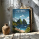 Bring Saint Lucia home with a bold Pitons view. Deep blue water, bright shoreline, lush green peaks, palm details give this tropical travel canvas a clean, modern look. Great for coastal decor, beach house style, or a calm office backdrop. A thoughtful gift for Caribbean travelers and island lovers.