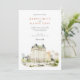 Capture the timeless elegance of a New York City wedding with this exquisite watercolor invitation. The design prominently features a beautiful illustration of the iconic Plaza Hotel, overlooking Grand Army Plaza with its famous equestrian statue (General William Tecumseh Sherman Monument). Rendered in a soft, sophisticated watercolor style, the artwork captures the grand architecture of The Plaza with its distinctive green and dark grey/blue mansard roof, set against a backdrop of the Manhattan skyline. Lush green trees and the paved plaza complete this classic New York streetscape. The colour palette includes elegant creams, beiges, sophisticated greens of the trees and roof accents, and muted urban tones, evoking a chic and timeless feel. Perfect for a classic, glamourous, or city-chic wedding celebration. The reverse side offers "The Finer Details" for additional guest information, maintaining the elegant aesthetic.