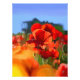 Beautiful light effects on this colourful poppies field . In background the shadow of a house.