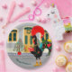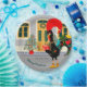 The Portuguese Rooster stands in front of the house holding a carefully picked Christmas present that he's about to deliver. The act captures the essence of the season, the joy of giving. This whimsical illustration embraces the true spirit of the season in Portugal. All text is personalizable.