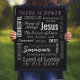 THERE IS POWER IN HIS NAME! Jesus is a beautiful name for a wonderful Saviour. It means "God who came to Save us". Here are seventeen names that are used in the Bible to describe Jesus. Modern white and grey lettering with stylish fonts on black. Easy to use templates to add (or subtract) text.