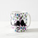 The whimsical black cat coffee cup design by Kats by Kelly that will get your motor purring!