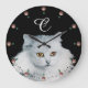 THE QUEEN OF WHITE CATS MONOGRAM ,Pink Gemstones Large Clock