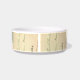This is a heavy, durable bowl decorated with Tibbies of many colors, the perfect size for hungry/thirsty Tibs. The design is interesting and printing clear.