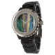 black leather strap watch band with rhinestone face with rainbow eucalyptus tree