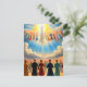 Here's a retro-style scene depicting The Rapture. Vividly colourful, this art shows a scene of Jesus appearing in the heavens while a crowd of people below look on.