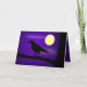 This bird is a symbol of a scary Halloween bird.. This raven is sitting on a branch of a tree. The moon is shining bright. A few clouds are around the moon. This greeting card matches the envelope and stamp. Customise with your own thoughts.