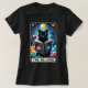 Custom relaxed fit women's t-shirt featuring "The Reader" illustrated tarot card with cosmic black cat reading a book in the clouds.