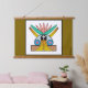 The polyester fabric displayed many wrinkles and several sharp creases throughout. At the bottom of the tapestry, I noticed a bulge in the fabric because it was not pulled tight enough before being connected to the wooden boards. It took me over an hour to spay water on the tapestry before putting it on an ironing board where I used a warm iron over a polyester cloth to remove the wrinkles and creases in the material. I was able to get out the wrinkles and creases that made that tapestry look as beautiful as its picture.