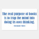 Christopher Morley wrote, "The real purpose of books is to trap the mind into doing its own thinking." We've rendered this quote in a bright shade of blue, and emblazoned it on a variety of products so that you can share it with others. Spring the trap on a new mind, and spark some fresh thought with a book today!