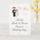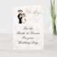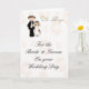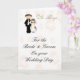This sweet wedding card has a white background with soft pick wedding bells on it and features a bride and groom. The designed was designed by Sketchart26 using artwork by Delightful Doodles.