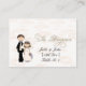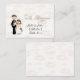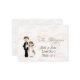 This sweet wedding placement card has a white background with soft pick wedding bells on it and features a bride and groom. The designed was designed by Sketchart26 using artwork by Delightful Doodles.