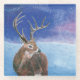 The red Deer during Winter, book Illustration, painting. Red Deer stag in snow.