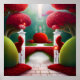 Colourful AI generated fantasy digital painting features a Wonderland style landscape of whimsical red trees and topiaries .