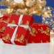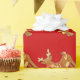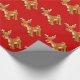Cute Christmas design features the reindeer with a glowing red nose on a red background.
