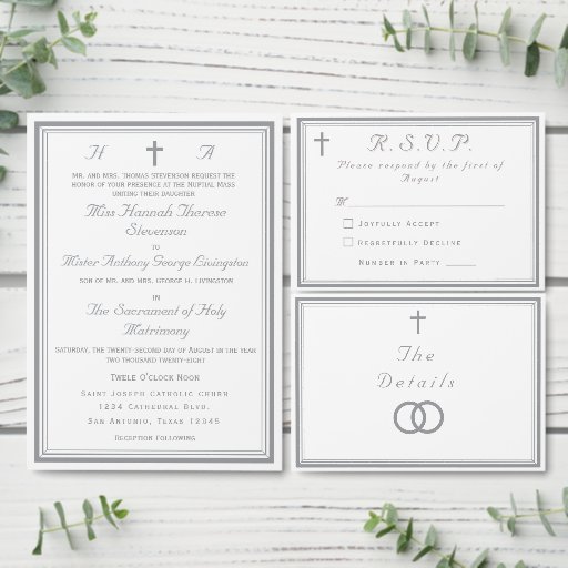 The Refined Catholic Silver Wedding Invitation