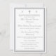 Design front features a pure white background to elegant, silver-colored text displayed in the proper format for a traditional Catholic wedding invitation. The image of a cross is displayed at top center between the initials of bride and groom. Entire design is framed by a fine, elegant border which adds a classy appearance to the design.