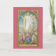 Wish your family and friends “Easter Blessings” with this lovely depiction of the Resurrection framed with a bright pink border. Done in vibrant spring colours, this traditional image was inspired by mediaeval Gothic prototypes. It depicts Christ at the very moment he rises from the tomb. + Because cliff-side rock-cut tombs were not common in Western Europe, Christ’s tomb here is a rectangular stone box standing above ground in the manner of Roman sarcophagi. Its lid, having been removed by an angel who is not pictured, lies on a diagonal across the opening behind Jesus. The tomb is surrounded by a half dozen or so of Roman soldiers. Most of the soldiers are still asleep but one or two begin to react with amazement to the scene unfolding above them. Clad in pristine white drapery, Jesus hovers above them with his bare feet not yet completely free of the tomb. He is framed by a mandorla, an almond-shaped radiance edged with stylised sun rays. He carries a “Resurrection Banner” in his left hand. The banner is suspended from a tall, thin cross and bears a cross--more pink in colour than the customary red--on a white field. The banner represents Christ’s victory over death. His right hand faces the viewer palm outward. The gesture is one of greeting or triumph as opposed to blessing (cf. our VVP 08). The wound left by the nail with which that hand was fastened to the cross is clearly visible as is the wound in his side where he was pierced with a lance. + Below the scene is a quote from Scripture. It reads: “Surrexit… sicut dixit”, that is, “He is risen… even as he said” (Matthew 28:6 – ASV [American Standard Version]) + Also available with an aqua blue, green, yellow or violet border. + Image Credit (SAU 041): Antique image in chromolithography entitled Surrexit… sicut dixit [He is risen… even as he said] originally published by the Socièté de St. Augustin, Bruges, Belgium, late 19th century, from the designer’s private collection of religious ephemera. Quote (Matthew 28:6): ASV [American Standard Version], which is in the Public Domain.