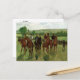 A fine art postcard with the painting, The Riders (1885), by French artist Edgar Degas (1834-1917). A horseracing portrait of several jockeys on their thoroughbreds in the field.
