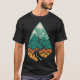 I give wanted to give this a 4 instead of a 5 because these Basic DARK T0shirts run unexpectedly SLIM or Narrow. Which is great if you do not have a potbelly, but I have a paunch. It isn't the shirt's fault that I've got a beer belly. The design and shirt itself is a quality cotton shirt. The color is more of a deep purple, but still a very pretty color. The Basic DARK T-shirts run a bit SLIMMER than the Basic Ts. The neck is a fraction narrower (or seems to be narrower) also. I'm a paunchy middle-aged woman and my neck is 12 inches (31cm) thick and the neckline fell about the same as in the photo of the man, and I had the desire to tug it a bit. So if you're a thick necked man or like loose shirts, be aware these are slimmer shirts. Once I get rid of my lockdown paunch it'll look great. The shirt washed well in cold water with no apparent bleeding. We don't have a dryer, so it hung dry. Did not shrink. Love the colors and the design. The design looks smaller on my shirt than it does on the model on-line. But still, it looks good on the shirt. The printing looks as it does on the model, just the size seems fractionally smaller. Washed garment in cold water, hung dry and design appeared unaffected.
