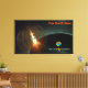 A shiny, golden fractal image, sort of a cross between a Fresnel lens and a bird cage, represents a Soviet-era lunar landing module. The image is superimposed on an a background resembling the dark side of the moon and stars. Russian text reading "Лунный корабль" - moon ship, or lunar ship, also appears, bracketing a red star. Add your own text.