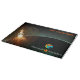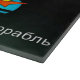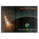 A shiny, golden fractal image, sort of a cross between a Fresnel lens and a bird cage, represent a Soviet-era lunar landing module. The image is superimposed on an a background resembling the dark side of the moon and stars. Russian text reading "Лунный корабль" - moon ship, or lunar ship, also appears, bracketing a red star. Add your own text.