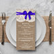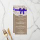 The rustic blue bow wedding collection is a stunning design featuring a lovely rustic burlap effect background with a romantic vintage white lace effect trim and a stunning blue bow.