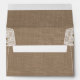 The rustic horseshoe collection is a stunning design featuring a lovely rustic burlap effect background with a romantic vintage white lace effect trim finished with two lucky intertwined horseshoes and twine.