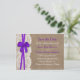 The rustic purple bow wedding collection is a stunning design featuring a lovely rustic burlap effect background with a romantic vintage white lace effect trim and a stunning purple bow.
