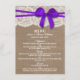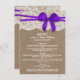 The rustic purple bow wedding collection is a stunning design featuring a lovely rustic burlap effect background with a romantic vintage white lace effect trim and a stunning purple bow.