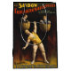 Step right up, folks! Witness the marvel of the modern age, the colossus carved from granite himself, The Sandow! -- Stronger than a bull moose, tougher than a wagon wheel, this German wonder ain't just muscle, he's a symphony of strength! Now, the Trocadero Vaudevilles ain't your dusty old opera house, no sir! This here's a palace of entertainment, a gilded cage for the most stupendous spectacles this side of the Mississippi! And tonight, you lucky sons-of-guns get to see Sandow in all his glory! -- But hold on to your hats, folks, 'cause Sandow ain't here for fancy weightlifting! Tonight, he's gonna rewrite the rules of human potential! Imagine this: two grown men, hefty enough to make a prizefighter whimper, hoisted high in wicker baskets like precious cargo. Now, picture those baskets dangling from a barbell, thicker than a sailor's arm! And that barbell, folks, that's balanced on the shoulders of a man sculpted by the gods – that's Sandow! -- The crowd gasps! Mothers clutch their pearls! Even the toughest cowboys can't help but gape in awe. Sandow stands there, a human Hercules holdin' the weight of two men with just one arm! His muscles bulge like overstuffed sausages, veins like rivers on a map, and the barbell doesn't even wiggle! -- A beat of stunned silence hangs heavy in the air. Then, the dam breaks! The crowd erupts in a roar, a cacophony of cheers, whistles, and stomps that could shake the foundations! Hats fly into the air, popcorn scatters like a hailstorm, and the very floorboards tremble under the thunderous applause. -- Sandow, with a grin that could light up a carnival at midnight, slowly lowers the barbell. The crowd goes wild again, their adulation echoin' through the Trocadero. This ain't just a show, folks, this is a miracle! A testament to the power of the human body, a spectacle that'll leave you slack-jawed and beggin' for more! So don't miss your chance to witness the legendary Sandow! He'll be here all week, folks, amazin' audiences and bendin' the very laws of physics! But hurry, because a sight this magnificent ain't gonna last forever! -- Created by The Strobridge Lith Co. Cincinnati & New York in 1894. This work is in the public domain in the United States because it was published (or registered with the U.S. Copyright Office) before January 1, 1927.